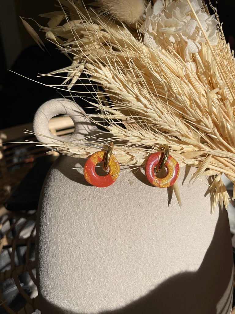 Découvrez nos boucles d'oreilles faites main en pâte de polymère.